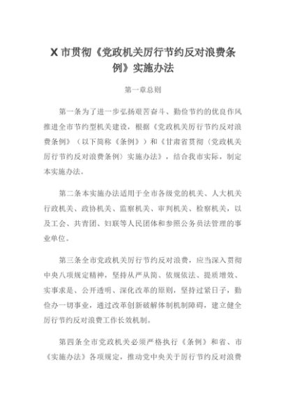 【七哥公文】2025年:X市贯彻《党政机关厉行节约反对浪费条例》实施办法+更多免费公文+VX:QiGeGongWen2024