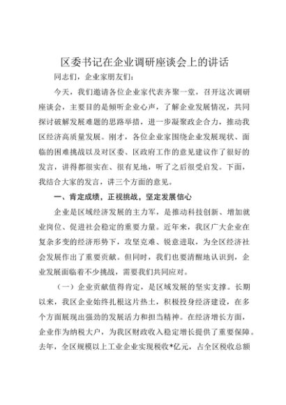 / 【七哥公文】2025年:区委书记在企业调研座谈会上的讲话+更多免费公文+VX:QiGeGongWen2024