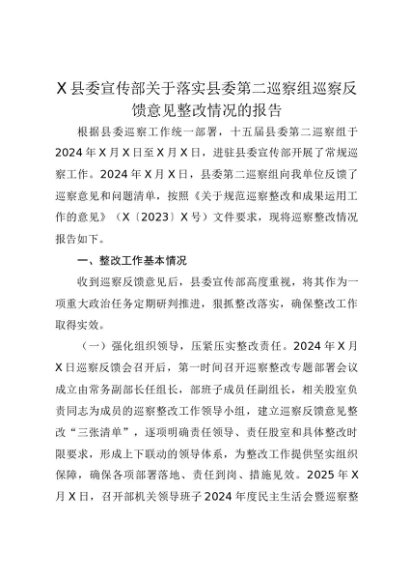【七哥公文】2025年:X县委宣传部关于落实县委第二巡察组巡察反馈意见整改情况的报告+更多免费公文+VX:QiGeGongWen2024