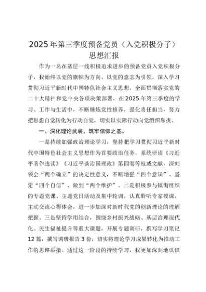 【七哥公文】2025年:2025年第三季度预备党员(入党积极分子)思想汇报+更多免费公文+VX:QiGeGongWen2024