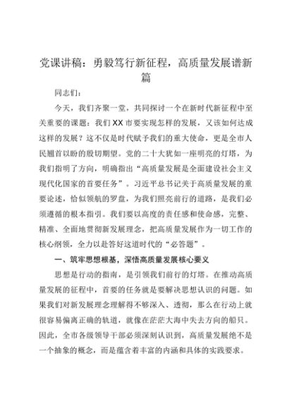 / 【七哥公文】2025年:党课讲稿:勇毅笃行新征程,高质量发展谱新篇+更多免费公文+VX:QiGeGongWen2024