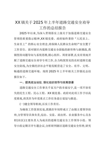 【七哥公文】2025年:XX镇关于2025年上半年道路交通安全劝导工作的总结报告+更多免费公文+VX:QiGeGongWen2024