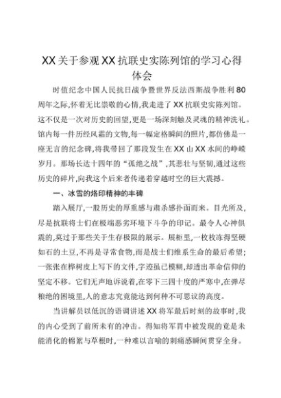 / 【七哥公文】2025年:XX关于参观XX抗联史实陈列馆的学习心得体会+更多免费公文+VX:QiGeGongWen2024