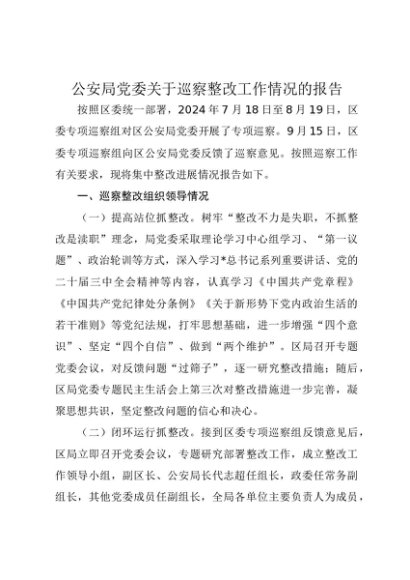/ 【七哥公文】2025年:公安局党委关于巡察整改工作情况的报告+更多免费公文+VX:QiGeGongWen2024