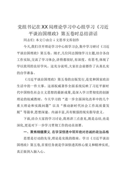【七哥公文】2025年:党组书记在XX局理论学习中心组学习《习近平谈治国理政》第五卷时总结讲话+更多免费公文+VX:QiGeGongWen2024