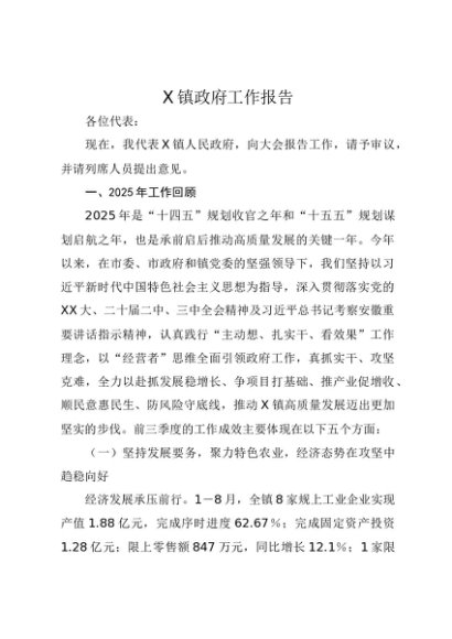 / 【七哥公文】2025年:X镇政府工作报告+更多免费公文+VX:QiGeGongWen2024