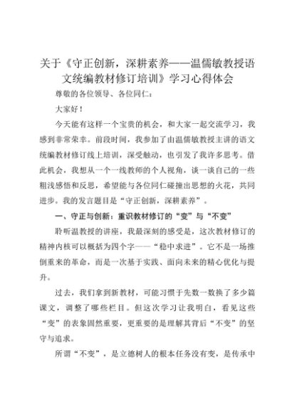 【七哥公文】2025年:关于《守正创新,深耕素养——温儒敏教授语文统编教材修订培训》学习心得体会+更多免费公文+VX:QiGeGongWen2024