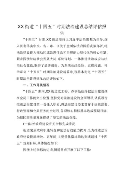 【七哥公文】2025年:XX街道“十四五”时期法治建设总结评估报告+更多免费公文+VX:QiGeGongWen2024