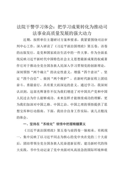 【七哥公文】2025年:法院干警学习体会:把学习成果转化为推动司法事业高质量发展的强大动力+更多免费公文+VX:QiGeGongWen2024