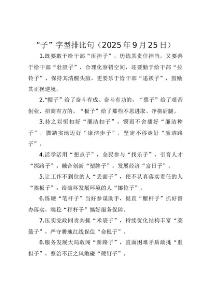 / 【七哥公文】2025年:“子”字型排比句(2025年9月25日)+更多免费公文+VX:QiGeGongWen2024