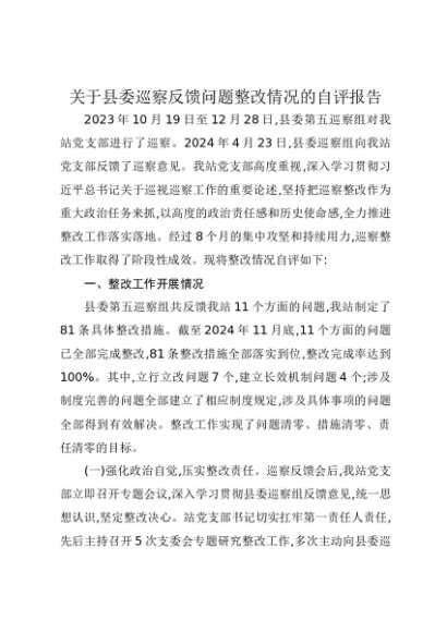 / 【七哥公文】2025年:关于县委巡察反馈问题整改情况的自评报告+更多免费公文+VX:QiGeGongWen2024
