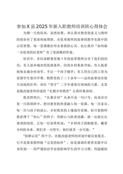 【七哥公文】2025年:参加X县2025年新入职教师培训班心得体会+更多免费公文+VX:QiGeGongWen2024