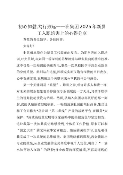 【七哥公文】2025年:初心如磐,笃行致远——在集团2025年新员工入职培训上的心得分享+更多免费公文+VX:QiGeGongWen2024