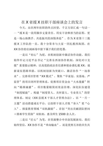 【七哥公文】2025年:在X省援X挂职干部座谈会上的发言2篇+更多免费公文+VX:QiGeGongWen2024