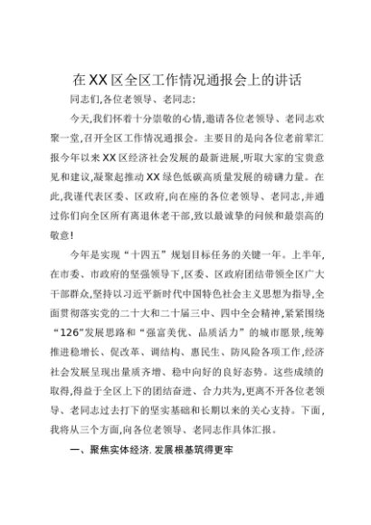 / 【七哥公文】2025年:在XX区全区工作情况通报会上的讲话+更多免费公文+VX:QiGeGongWen2024