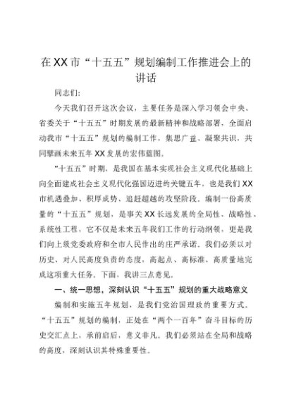 / 【七哥公文】2025年:在XX市“十五五”规划编制工作推进会上的讲话+更多免费公文+VX:QiGeGongWen2024