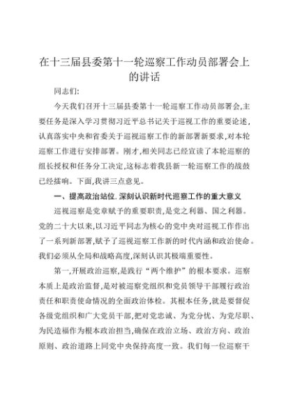 【七哥公文】2025年:在十三届县委第十一轮巡察工作动员部署会上的讲话2+更多免费公文+VX:QiGeGongWen2024