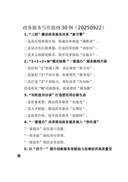 / 【七哥公文】2025年:政务服务写作提纲30例(20250922)+更多免费公文+VX:QiGeGongWen2024