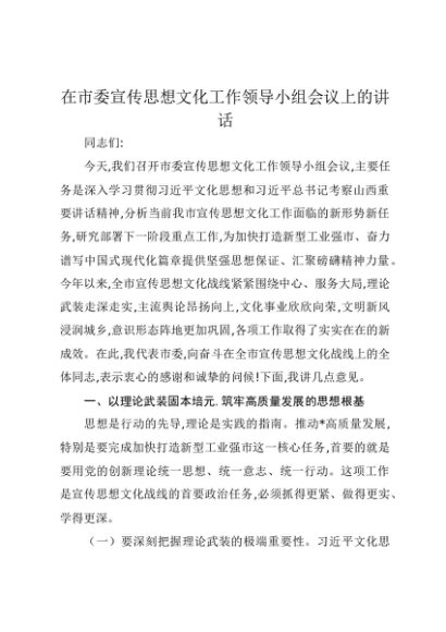 / 【七哥公文】2025年:在市委宣传思想文化工作领导小组会议上的讲话+更多免费公文+VX:QiGeGongWen2024