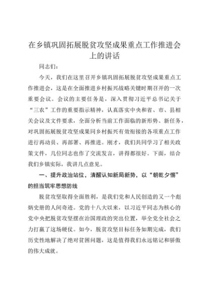 【七哥公文】2025年:在乡镇巩固拓展脱贫攻坚成果重点工作推进会上的讲话+更多免费公文+VX:QiGeGongWen2024