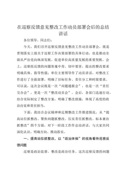 / 【七哥公文】2025年:在巡察反馈意见整改工作动员部署会后的总结讲话+更多免费公文+VX:QiGeGongWen2024