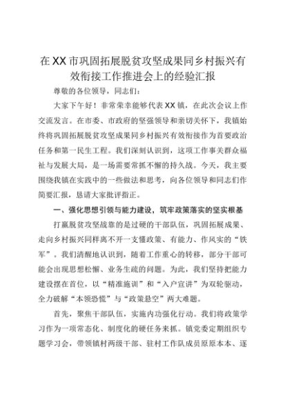 【七哥公文】2025年:在XX市巩固拓展脱贫攻坚成果同乡村振兴有效衔接工作推进会上的经验汇报+更多免费公文+VX:QiGeGongWen2024