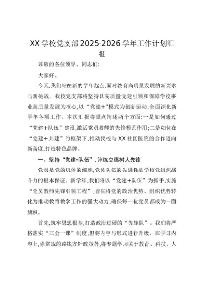 【七哥公文】2025年:XX学校党支部2025-2026学年工作计划汇报+更多免费公文+VX:QiGeGongWen2024