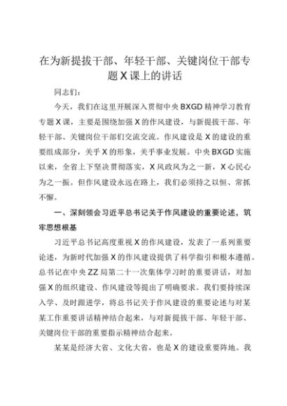 【七哥公文】2025年:在为新提拔干部、年轻干部、关键岗位干部专题党课上的讲话+更多免费公文+VX:QiGeGongWen2024