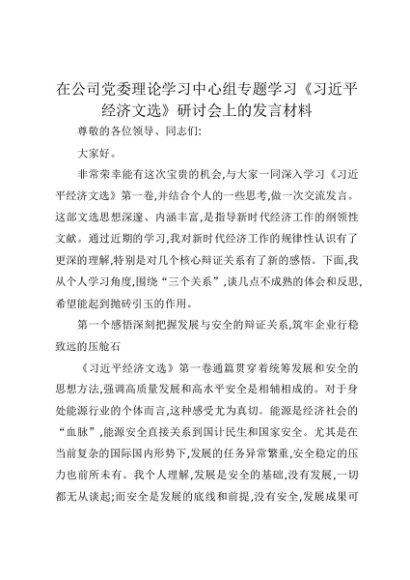 【七哥公文】2025年:在公司党委理论学习中心组专题学习《习近平经济文选》研讨会上的发言材料+更多免费公文+VX:QiGeGongWen2024