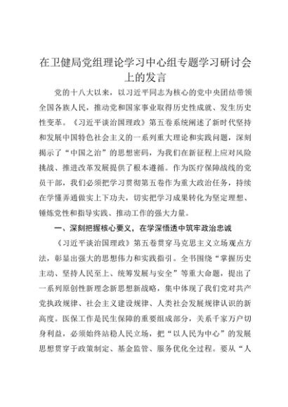 【七哥公文】2025年:在卫健局党组理论学习中心组专题学习研讨会上的发言《习近平谈治国理政》第五卷+更多免费公文+VX:QiGeGongWen2024