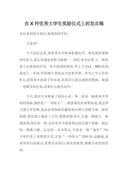 【七哥公文】2025年:在X村优秀大学生奖励仪式上的发言稿+更多免费公文+VX:QiGeGongWen2024