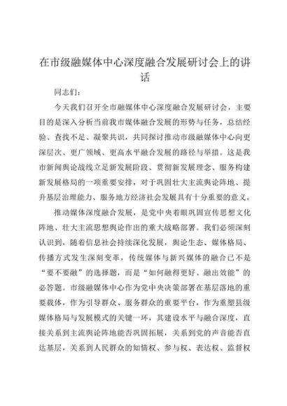 / 【七哥公文】2025年:在市级融媒体中心深度融合发展研讨会上的讲话+更多免费公文+VX:QiGeGongWen2024
