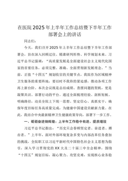 【七哥公文】2025年:在医院2025年上半年工作总结暨下半年工作部署会上的讲话2+更多免费公文+VX:QiGeGongWen2024