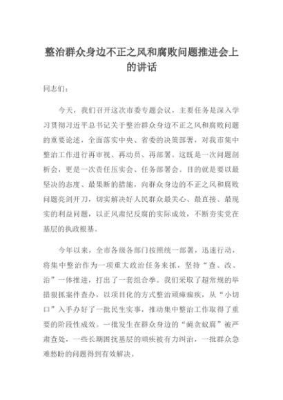 / 【七哥公文】2025年:整治群众身边不正之风和腐败问题推进会上的讲话+更多免费公文+VX:QiGeGongWen2024