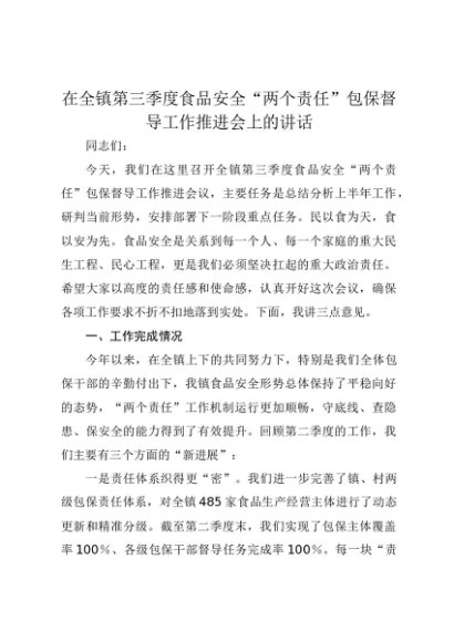 【七哥公文】2025年:在全镇第三季度食品安全“两个责任”包保督导工作推进会上的讲话+更多免费公文+VX:QiGeGongWen2024