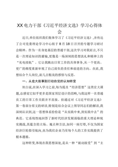 / 【七哥公文】2025年:XX电力干部《习近平经济文选》学习心得体会+更多免费公文+VX:QiGeGongWen2024