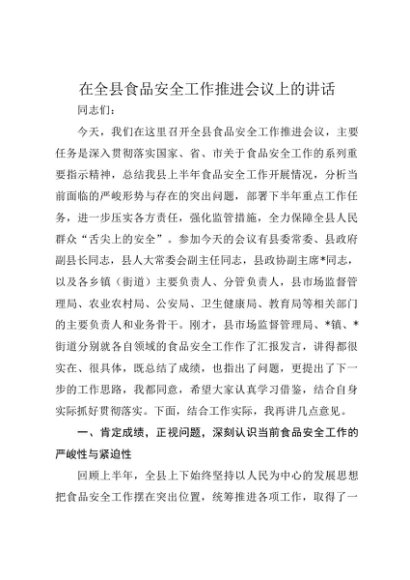 / 【七哥公文】2025年:在全县食品安全工作推进会议上的讲话+更多免费公文+VX:QiGeGongWen2024