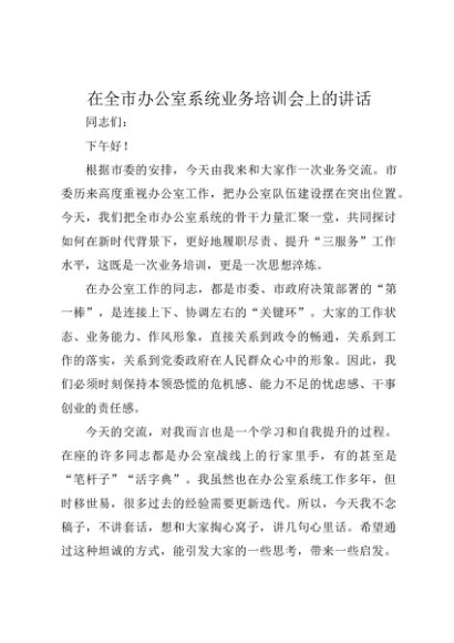 / 【七哥公文】2025年:在全市办公室系统业务培训会上的讲话+更多免费公文+VX:QiGeGongWen2024