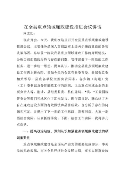 / 【七哥公文】2025年:在全县重点领域廉政建设推进会议讲话+更多免费公文+VX:QiGeGongWen2024