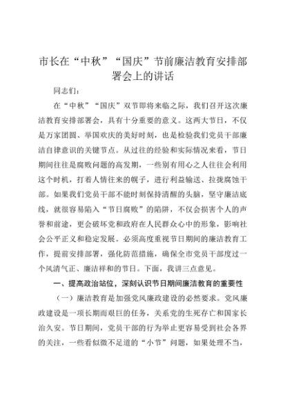 【七哥公文】2025年:市长在“中秋”“国庆”节前廉洁教育安排部署会上的讲话+更多免费公文+VX:QiGeGongWen2024