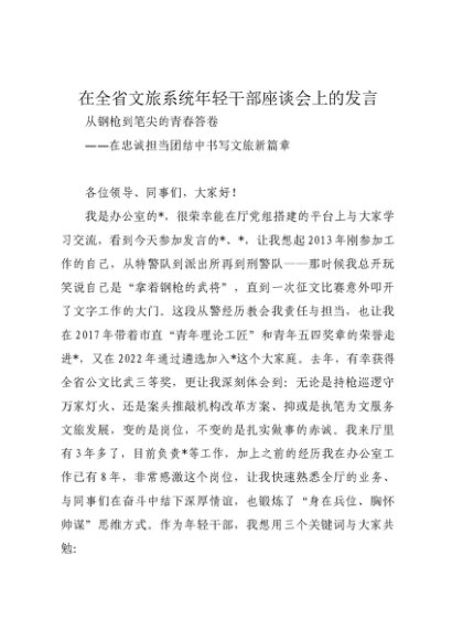 / 【七哥公文】2025年:在全省文旅系统年轻干部座谈会上的发言+更多免费公文+VX:QiGeGongWen2024