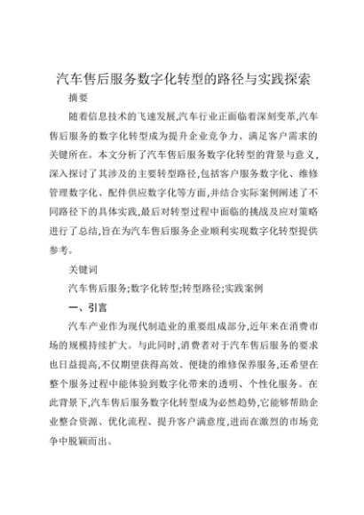 【七哥公文】2025年:调研报告:汽车售后服务数字化转型的路径与实践探索+更多免费公文+VX:QiGeGongWen2024