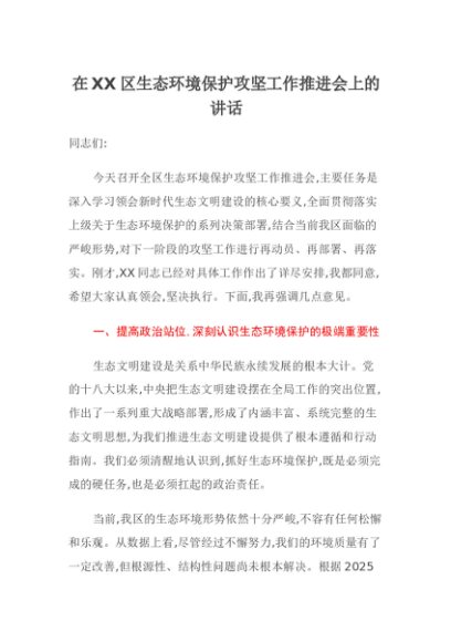 / 【七哥公文】2025年:在XX区生态环境保护攻坚工作推进会上的讲话+更多免费公文+VX:QiGeGongWen2024