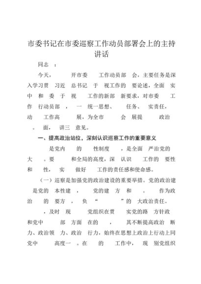 / 【七哥公文】2025年:市委书记在市委巡察工作动员部署会上的主持讲话+更多免费公文+VX:QiGeGongWen2024