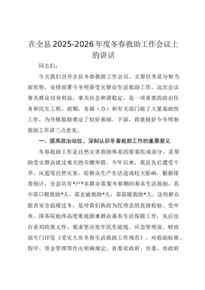 【七哥公文】2025年:在全县2025-2026年度冬春救助工作会议上的讲话+更多免费公文+VX:QiGeGongWen2024