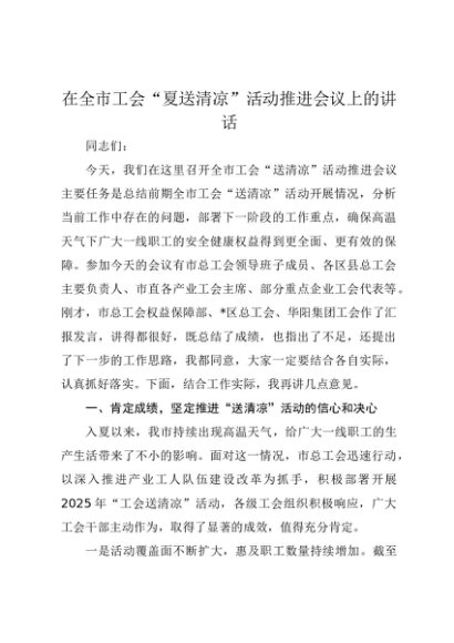 / 【七哥公文】2025年:在全市工会“夏送清凉”活动推进会议上的讲话+更多免费公文+VX:QiGeGongWen2024
