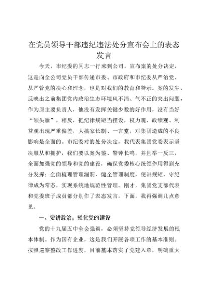 / 【七哥公文】2025年:在党员领导干部违纪违法处分宣布会上的表态发言+更多免费公文+VX:QiGeGongWen2024