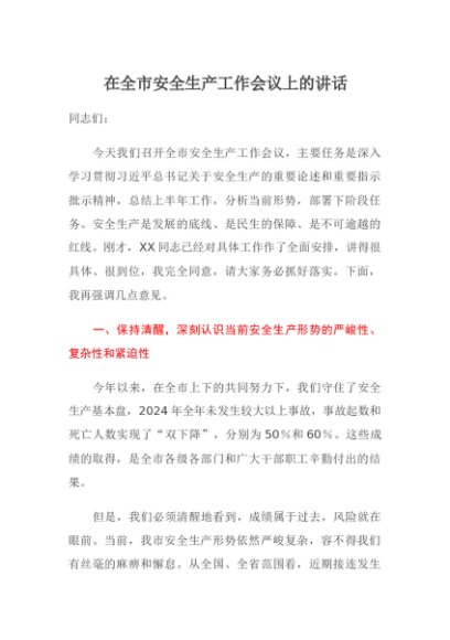 / 【七哥公文】2025年:在全市安全生产工作会议上的讲话+更多免费公文+VX:QiGeGongWen2024