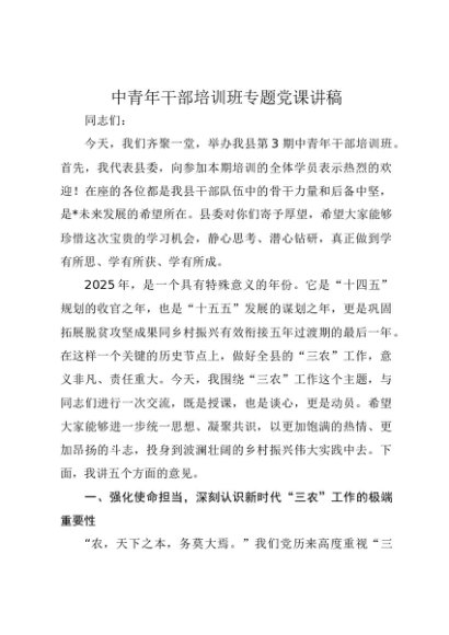 / 【七哥公文】2025年:中青年干部培训班专题党课讲稿+更多免费公文+VX:QiGeGongWen2024