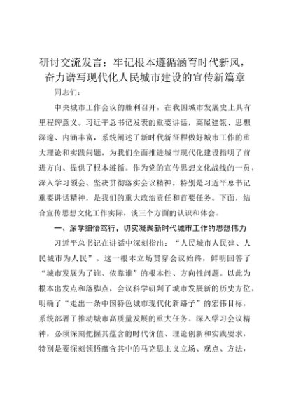 【七哥公文】2025年:研讨交流发言:牢记根本遵循涵育时代新风,奋力谱写现代化人民城市建设的宣传新篇章+更多免费公文+VX:QiGeGongWen2024